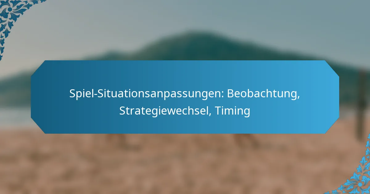 Spielanpassungen sind entscheidend, um die Teamleistung während eines Spiels zu maximieren, da sie strategische Änderungen beinhalten, die als Reaktion auf Echtzeitbeobachtungen der Spielabläufe vorgenommen werden. Durch die genaue Überwachung der Spielerinteraktionen und externen Faktoren können Teams ihre Taktiken effektiv anpassen, um ihre Erfolgschancen zu erhöhen und auf die Strategien des Gegners zu reagieren.