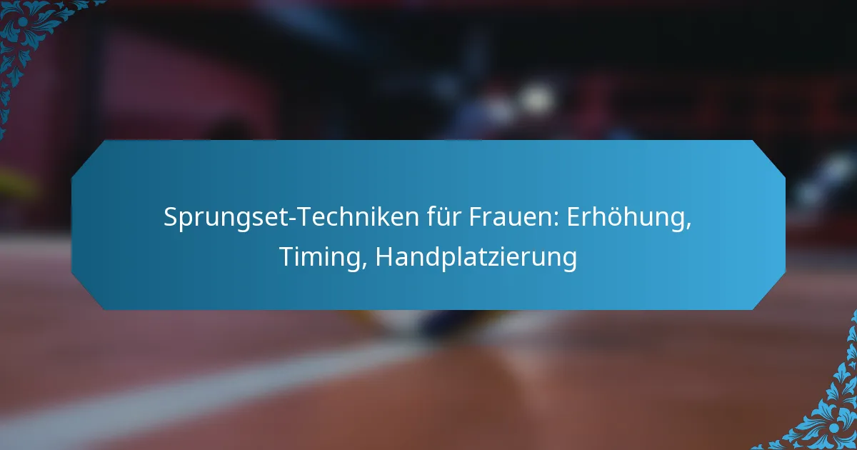 Die Techniken des Sprungsetzens für Frauen im Volleyball sind entscheidend für die Ausführung effektiver Offensivspielzüge und basieren auf einer Kombination aus Höhe, Timing und Handplatzierung. Das Beherrschen dieser Fähigkeiten verbessert nicht nur die Leistung, sondern berücksichtigt auch die einzigartigen physiologischen Merkmale weiblicher Athleten, was zu einer verbesserten Genauigkeit und Kraft bei den Sets führt.