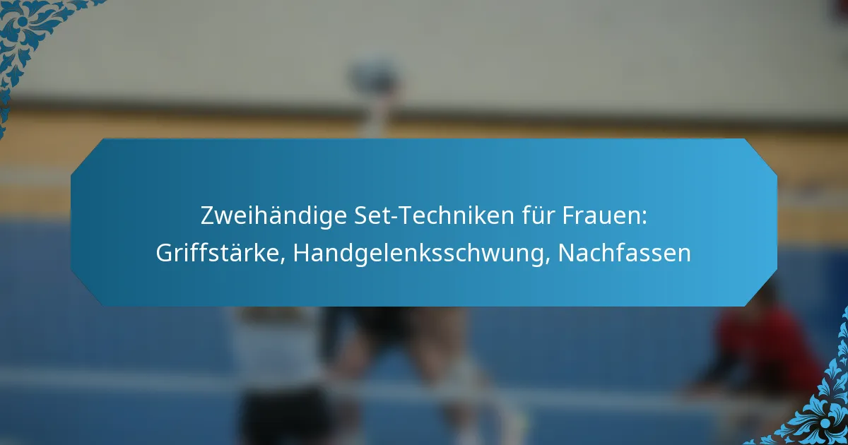 Zweihändige Set-Techniken für Frauen sind entscheidend, um Präzision und Kraft in Sportarten wie Volleyball und Basketball zu erreichen. Wichtige Komponenten wie Griffstärke, Handgelenksbewegung und Nachfassen spielen eine bedeutende Rolle bei der Verbesserung der Gesamtleistung. Durch die Fokussierung auf diese Elemente können Athleten ihre Kontrolle und Effektivität während des Spiels verbessern.