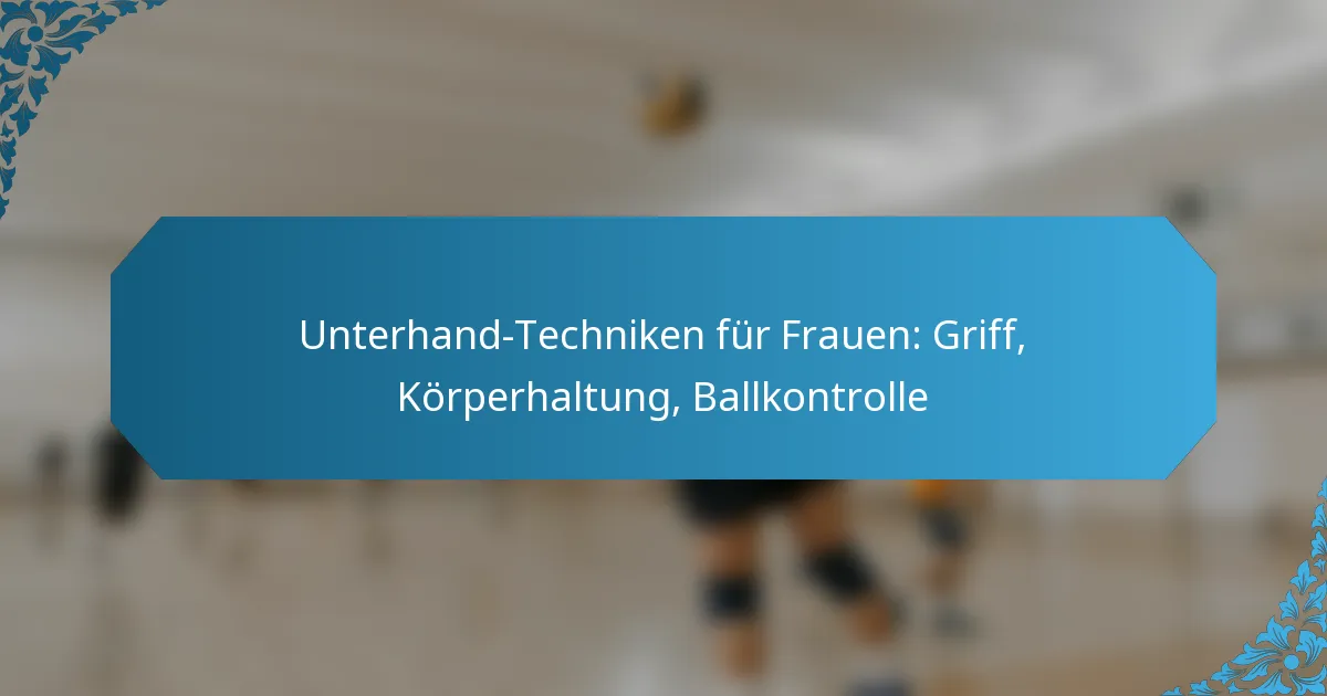 Die wichtigsten Komponenten der Unterhand-Technik für Frauen umfassen Griff, Körperhaltung und Ballkontrolle. Das Beherrschen dieser Elemente verbessert die Setzgenauigkeit und -effektivität, die für ein erfolgreiches Spiel entscheidend sind.