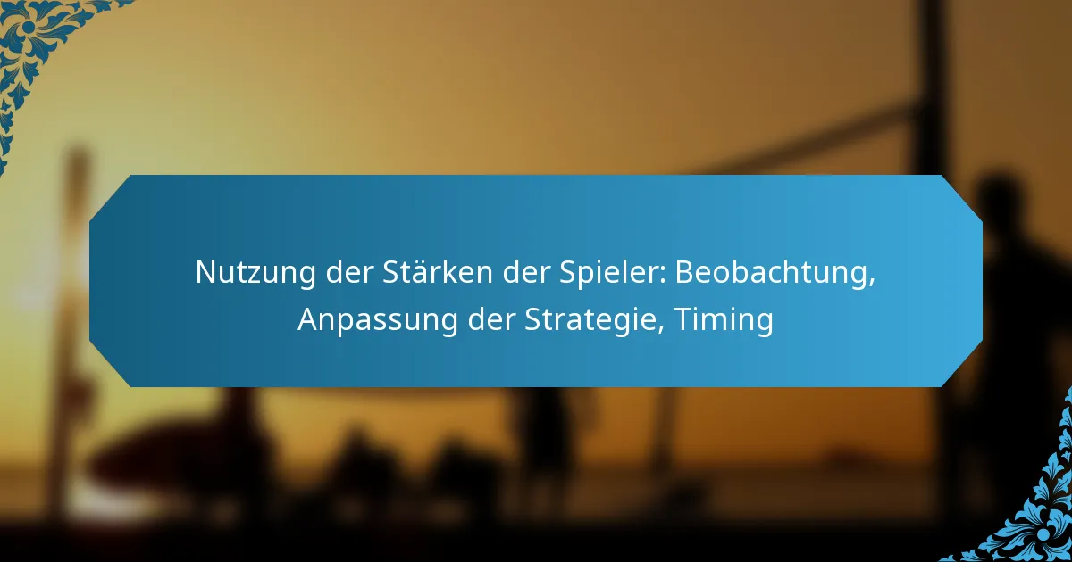 Die Nutzung der Stärken der Spieler ist entscheidend für die Verbesserung der Teamleistung und erfordert effektive Beobachtungstechniken, um individuelle Fähigkeiten während des Trainings und Spiels zu bewerten. Durch die Anpassung von Strategien zur Nutzung dieser Stärken können Trainer die Spielpläne an die einzigartigen Fähigkeiten jedes Spielers anpassen. Darüber hinaus kann das Erkennen des optimalen Zeitpunkts, um diese Stärken in entscheidenden Momenten eines Spiels einzusetzen, die Wirkung eines Spielers auf dem Feld erheblich verstärken.
